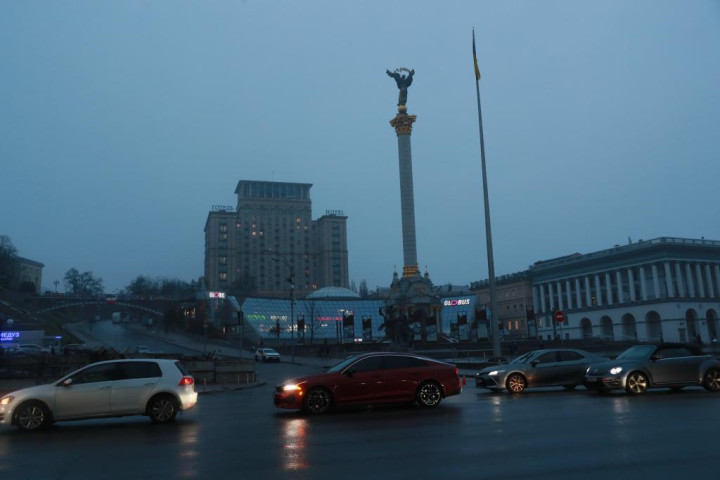 2025年11月20日,因俄乌冲突,乌克兰首都基辅主要街道的照明设施出现大面积停电,车辆在暮色中驶过独立广场。新华社记者李东旭摄